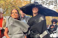 Знаменитость опубликовала видео с показа бренда Comme Des Garçons, где она появилась в широкополой шляпе черного цвета. «Очень удобная шляпа, кстати. «Хер подойдешь» называется», — так свой головной убор описала сама Собчак.