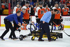 Защитника «Торонто Мейпл Лифс» Криса Танева унесли на носилках после столкновения с российским нападающим «Филадельфии Флайерз» Матвеем Мичковым в матче регулярного чемпионата Национальной хоккейной лиги (НХЛ). Об этом сообщает корреспондент «Ленты.ру».