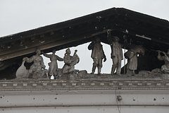 Здание драматического театра в Мариуполе было повреждено взрывом 16 марта 2022 года. В Минобороны России сообщили, что заминированное здание театра взорвали боевики нацбатальона «Азов» (признан в России запрещенной террористической организацией).