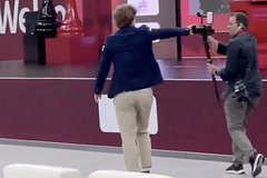 Норвежец поспешил покинуть зал и оттолкнул камеру оператора, когда тот приблизился.